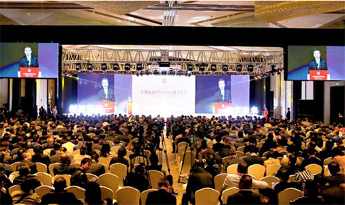 3月18日上午, 以“创新发展·共享未来”为主题的五粮液品牌经销商营销工作会在成都召开。五粮液集团高管、经销商代表及投资者代表等800余人参会。